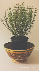 Pling, een what’s app bericht van mijn lief dat hij in het vliegtuig zit, vanuit Taiwan en zin heeft om naar huis te komen! Finn komt voorbij rennen want hij moet nog een kaart voor Opa posten. Op spotify zingt Racoon iets over, good times en net op dat moment pluk ik gedachteloos wat tijm voor door de hutspot.
