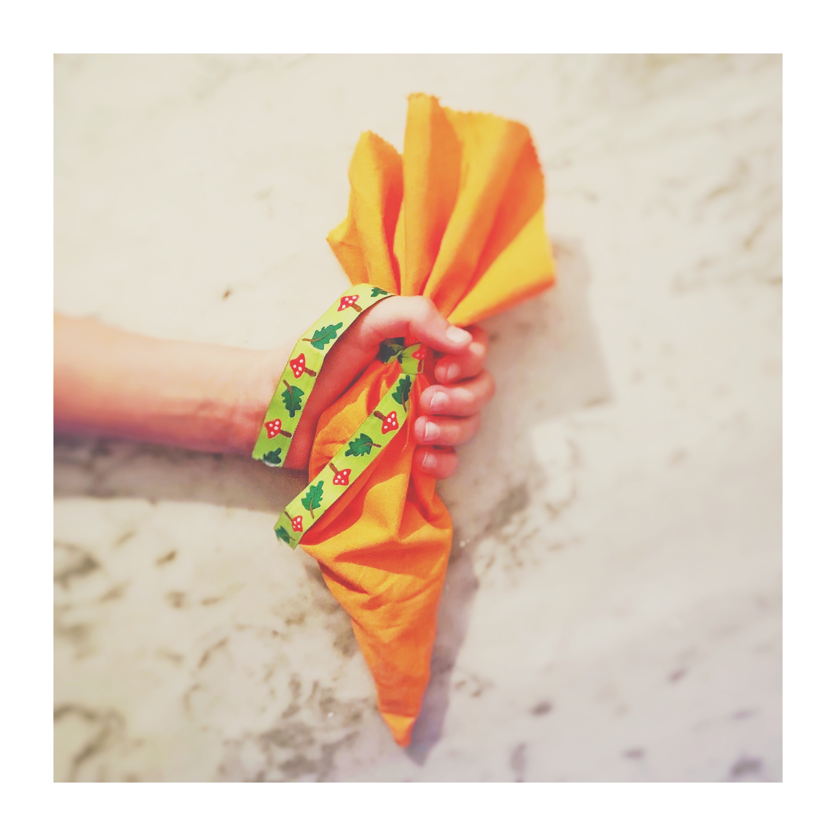 • Zoek een stofje uit. Ik heb een oude molton gebruikt (lekker zacht) en een ander oud stofje met een leuk motiefje