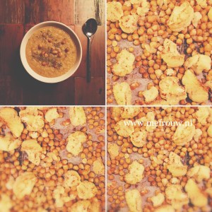 ⁃ gooi nu alles bij elkaar, houd een paar kikkererwten apart voor de garnering en pureer het met een staafmixer